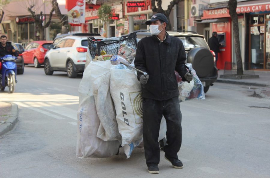 Bursa'da 3 yıldır çöplerden hurda topladığını ifade eden Hakan Seyrek Basan, "Bu iş çok zor, ellerimizle çöpleri karıştırıp ekmek paramızı kazanıyoruz. İnsanların evlerinden uzaklaştırdıkları çöplerden biz ekmeğimizi çıkartıyoruz. Çöplerde korona virüs olabilir. Bize de bulaşır diye korkuyoruz, ama ekmek parası için yapacak başka bir işimiz yok.